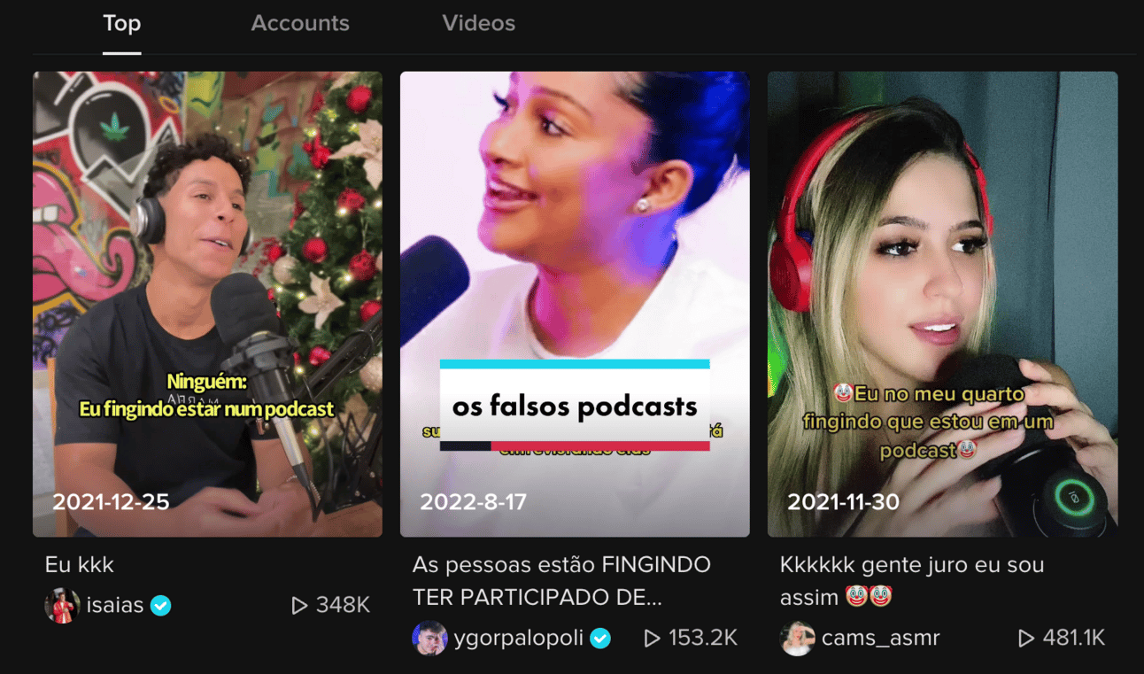 So on Friday, I wrote about the pornstar that creates clips of a podcast that doesn’t exist to bait men into getting angry (or horny (or both)). Turns out this is a huge thing in Brazil and there’s even a term for it, “fingindo podcast,” or “pretending podcast”. And if you search it on TikTok, there’s a ton of examples. Also, here’s a good Twitter thread in English about it.
