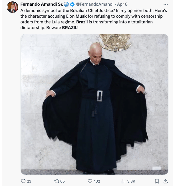 Musk, over the weekend, dusted off his usual playbook and launched a harassment campaign against Alexandre de Moraes, the court’s president. Musk has threatened to publish everything that Moraes has sent to X (they’re doing some dumb Twitter Files thing again), demanded Moraes resign (doubtful), and also compared Moraes to Darth Vader (he honestly looks more like Voldemort).