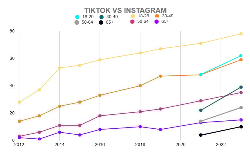 According to Pew’s survey, which was conducted in September of last year, there was a 14% increase in users aged 18-30 on TikTok since 2021, which was the last time Pew pulled numbers for the app. Some of this is natural — a user makes an account as a teenager and ages alongside the platform. But if you compare TikTok to other once-buzzy youth-oriented apps, however, you start to realize that TikTok is aging quite a bit.