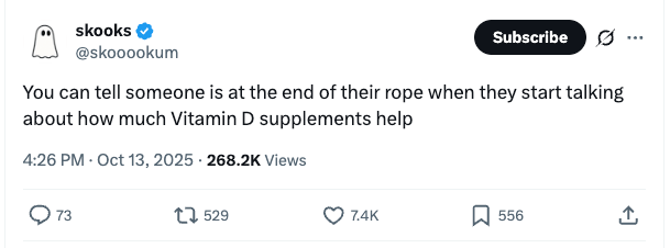 And just to give you a sense of how interconnected the world of culture and politics is now, thanks to the platforms we use to navigate the web. Ellie told me that recently the algorithms for her MAHA Instagram and TikTok accounts switched to hardcore white nationalism and she had to retrain them to focus on wellness content again. It only took one or two likes of MAHA posts complaining about people using EBT cards/food stamps to buy unhealthy food to trigger a flood of videos of people in red hats attacking welfare queens and AI-generated videos depicting Black women looting stores. It took over 100 engagements with wellness and “alternative health” posts to deprogram it.