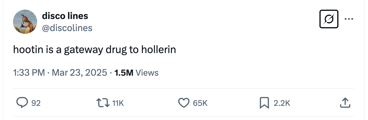 But it turned into a days-long argument on X about whether or not a woman even joking about having a threesome with two men is a form of rape culture or not. To spare you having to click around to understand the dynamics here — and to hopefully explain any passing references to the drama you may encounter — there are basically two camps. The first camp is, what appear to be, a handful of very, very young “fandom” accounts that find sex horrifying and ingested too many Tumblr posts at too young of an age and now have the same sexual politics as a 17th-century religious fanatic, but in a woke way. The other camp are millennials who are having trouble understanding that an entire generation of young people who have only viewed sexuality through the prism of the internet are really not doing well psychologically. If you’d like to read choice selections from this debate, click here, here, and here. Also, this is a pretty good essay on the whole thing. Godspeed.