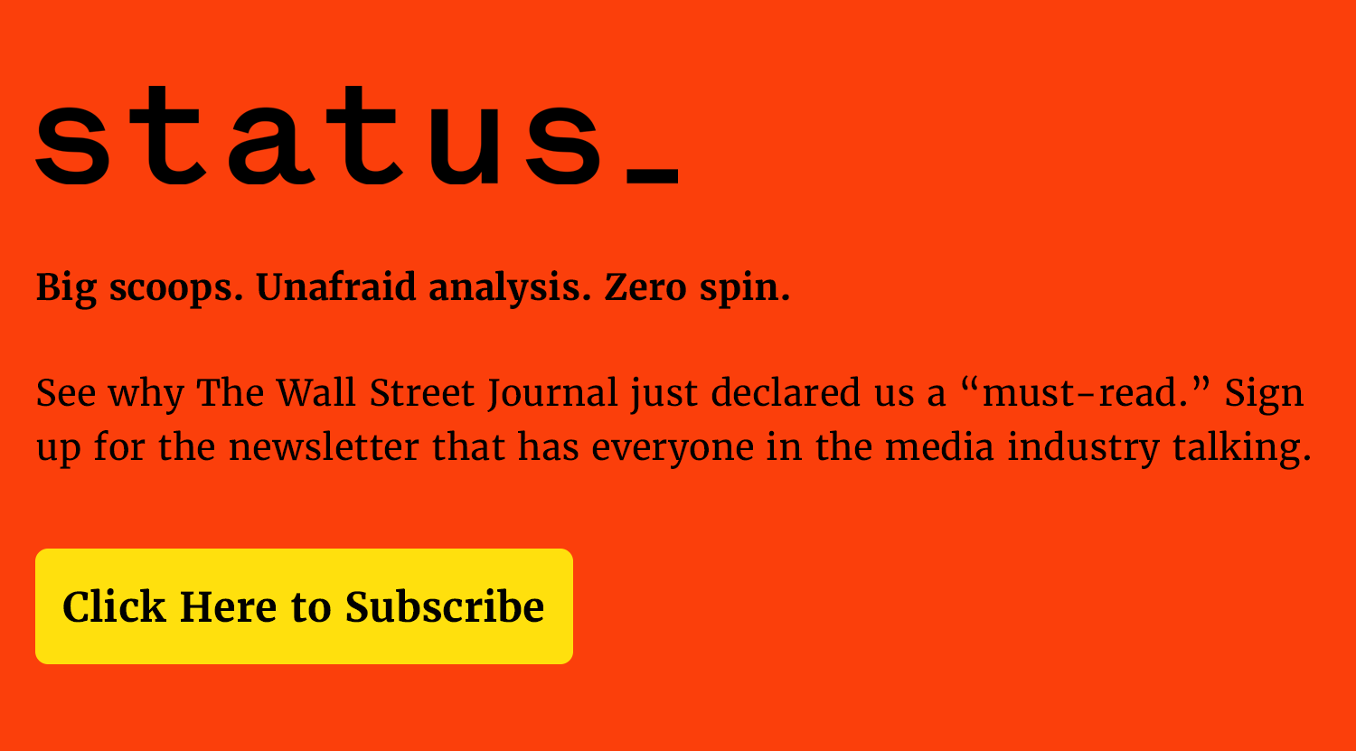 Power runs on information. Status is your daily dispatch from the front lines—where media, tech, and politics collide. With fearless reporting and sharp insight, we hold the most influential figures to account. Subscribe by clicking here.