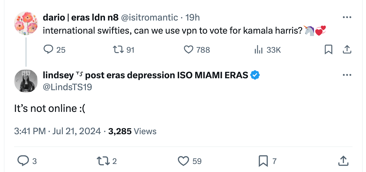 Harris is very viral right now. She is also polling about the same as Trump. Which is better than Biden and, honestly, good for literally day one of her campaign. She has already raised $50 million in what The New York Times is calling a “cash wave,” with more on the way. So right now, the Harris campaign is surging both online and off. But if the internet in the 2010s was the semi-reliable tip of America’s cultural iceberg, the internet in the 2020s is a totally separate reality. One you cannot ignore, but one that is also dangerous to depend on. So the key is to feed the online world with content from the offline world. To create — and continue to create — enough cultural impact that you stay in people’s feeds. At least until November.