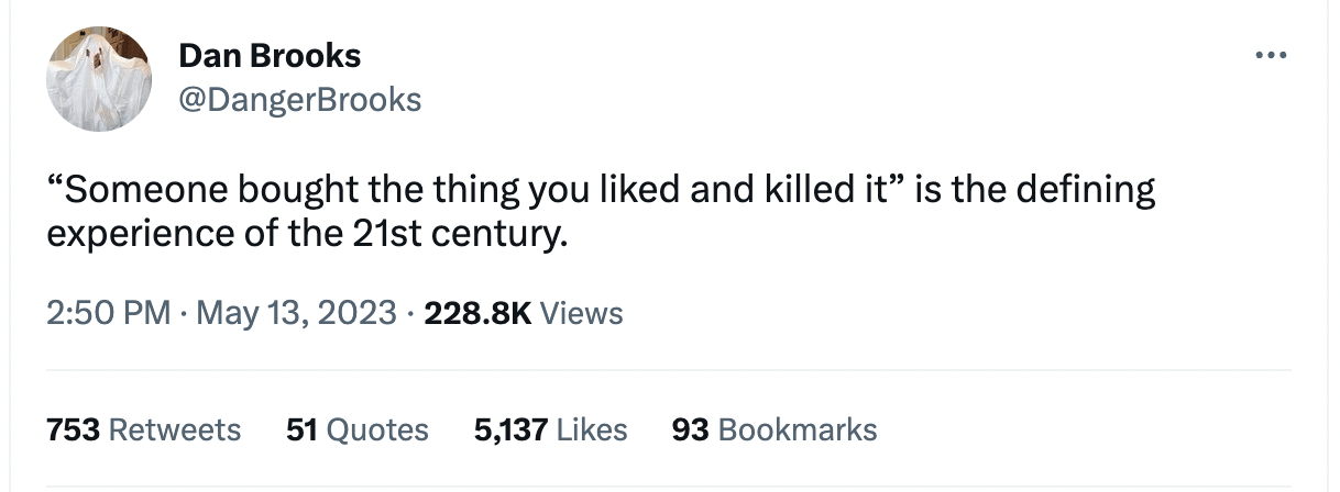 So let’s pretend that Twitter’s policies actually express a coherent ideology. Let’s pretend that Twitter is still doing “good” moderation, like blocking Russian propaganda in Europe, on purpose and not because no one works there anymore and many of its services and policies just run on autopilot now. And let’s also pretend that Twitter has thought through the implications of censoring content in Turkey and India and isn’t just acting out of cowardice and laziness or because Musk is wants to protect future Tesla business in those countries. What do we make of that? Well, it means that Twitter’s moderation is for sale. And I think it’s naive to pretend that Twitter is alone in doing this kind of moral and ethical arithmetic with our content. As long as we’re using corporate-owned platforms to communicate online, this will always be a possibility. Twitter just doesn’t care about hiding it anymore.