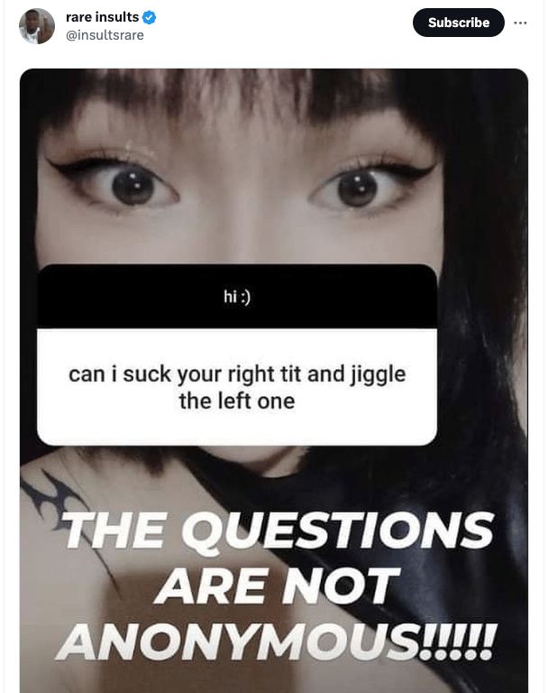 On Monday, a verified meme account called @insultsrare, which mostly just posts old viral screenshots, shared this: