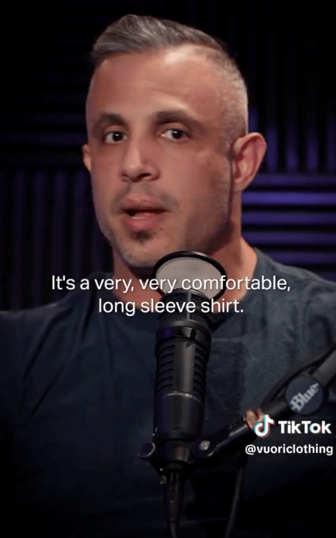 I am unclear if Vuori paid Mind Pump for the sponcon (I have to assume so?), but regardless, the brand then cut up the clips and are using them as ads on TikTok.