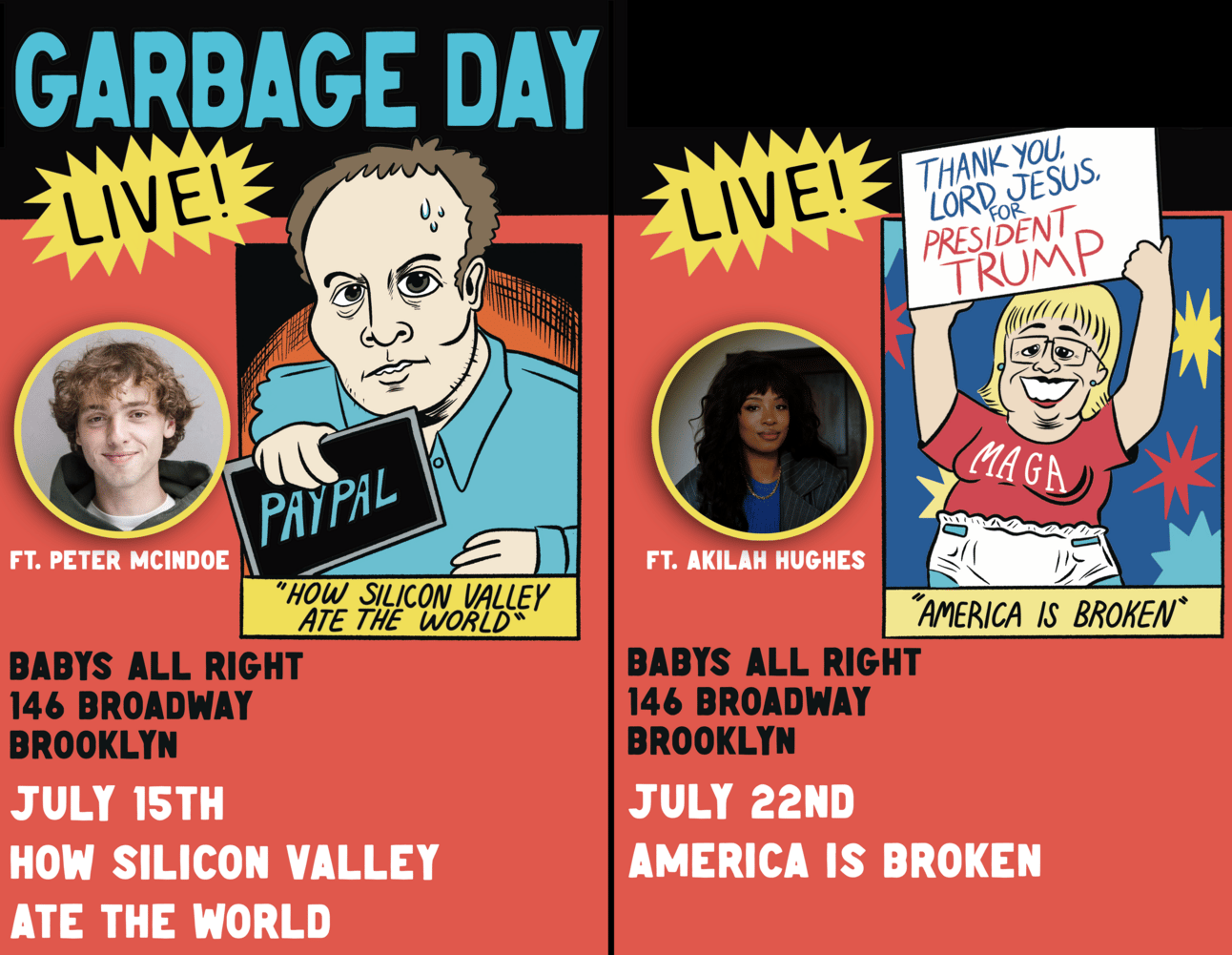 This is probably a good time to mention Garbage Day’s new policy when it comes to X, which we started on Friday and will continue to work on. We don’t want to give X any more traffic than we have to, but we also do want to track where things are online come from and amplify the few good voices left on that platform. As we see it, X in 2025 is basically the same as 4chan in 2014. Yes, there’s some good stuff on there, but sending unsuspecting users there isn’t responsible. So going forward, we’ll only be embedding X video clips when there is no other option, continuing to screenshot anything else if we need it, and diminishing X links as much as we can in general. When we do have link out to X, we’ll be noting that in the text or marking them with a warning, as we did in Friday’s issue. We’ll continue to tweak and monitor — and cover what happens on the site — but we don’t want our readers accidentally ending up there if they’re trying to avoid it.