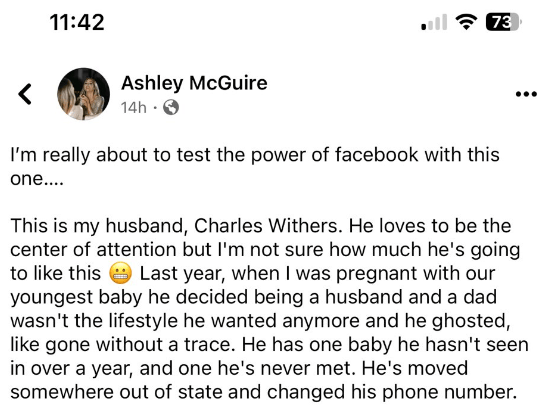 Over the weekend, a woman from Massachusetts named Ashley McGuire posted on Facebook that she was trying to track down her husband, who she alleges ghosted her and left the state, making it impossible to properly divorce him.