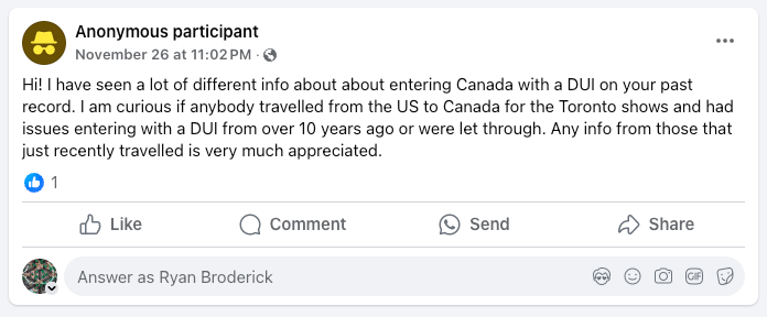 I have seen multiple reports now that there is a lot of drama in various Facebook Groups for the Vancouver date of Taylor Swift’s Eras Tour because, apparently, more than a few American fans who hoped to cross the border to attend are just now realizing they can’t if they have a DUI on their record. Whoops!
