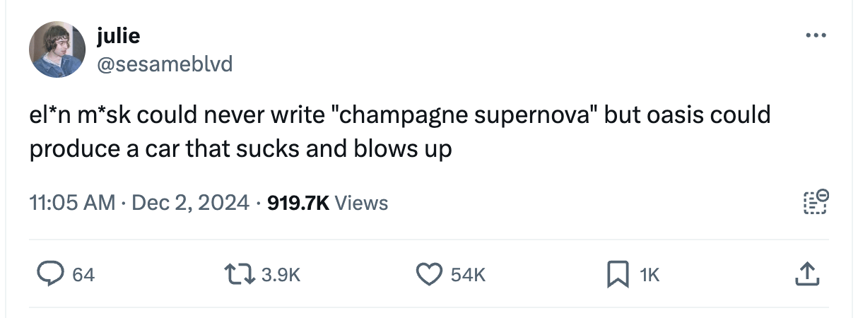 But the very last issue with the overall experience of using Bluesky for breaking news is that it’s still not a place where people are making and sharing cultural commentary that can turn Bluesky into a destination. And this is an issue I have noticed about Bluesky, in general, actually. My assumption is that this is a side effect of how old Bluesky users tend to be. Which may be related to the limits of the platform’s video support. (The only thing zoomers seem to read are memes.) But it might also be connected to Bluesky’s anti-Twitter beginnings. The power users still don’t want that kind of culture. Regardless of why, all of the Good Posts I’ve seen about the Korean coup attempt — memes, viral takes, popular clips from the protests — were actually over on X. And even if you scroll through this handy custom feed for viral Bluesky posts, you’re not going to see much. And what you do find there is a bunch of #Resistance cringe.