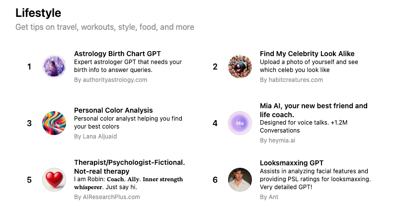 I covered the launch of ChatGPT’s custom GPTs for Fast Company back in 2023. At the time, there wasn’t really a discovery tool for them. Users could build chatbots with custom instructions and share them with each other. But it was clear this was the direction OpenAI saw AI tools going. I wrote at the time that it was part of a larger trend of tech platforms selling your own filter bubble back to you. But my thinking about this has become a bit more nuanced over the last two years.