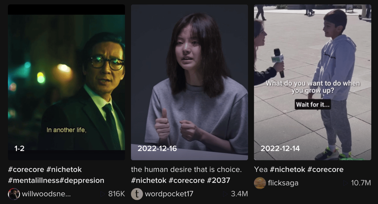 Chances are you’ve seen a few explainers going around about “#corecore,” a sorta-new TikTok sorta-aesthetic. NBC News’ Kalhan Rosenblatt defined it recently as “images and video from various mediums — such as memes, headlines, movie and television clips” set to “emotional, rousing musical scores.”