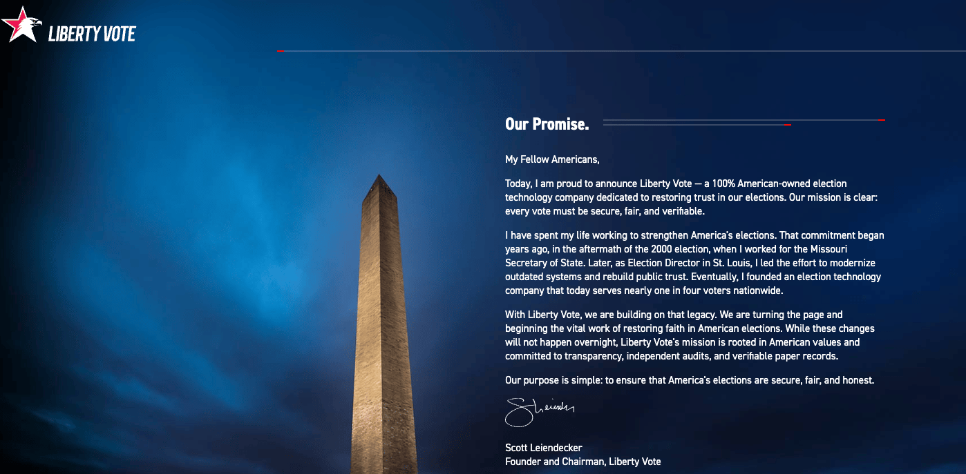 What are those alternatives he may be alluding to? Well, wouldn’t you know it. Scott Leiendecker, a former Republican election official, just purchased Dominion Voting Systems. The company at the center of the 2020 election conspiracy theories. And just to kill any optimism you might have about the company remaining objective going forward, Leiendecker has renamed Dominion, Liberty Vote (uh oh), and posted a note about his intentions on Dominion’s website. “Our mission is clear: every vote must be secure, fair, and verifiable,” which is exactly what you’d say if you weren’t going to do that.