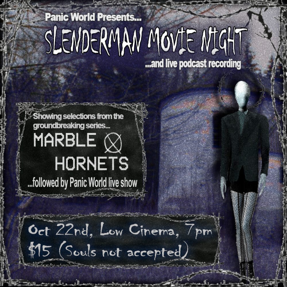 We’re taking over Low Cinema in Ridgewood, Queens on October 22nd for a special showing of the Slenderman-themed web series Marble Hornets. Ryan and Grant will also be doing a live recording of Panic World post-screening. Come join us!