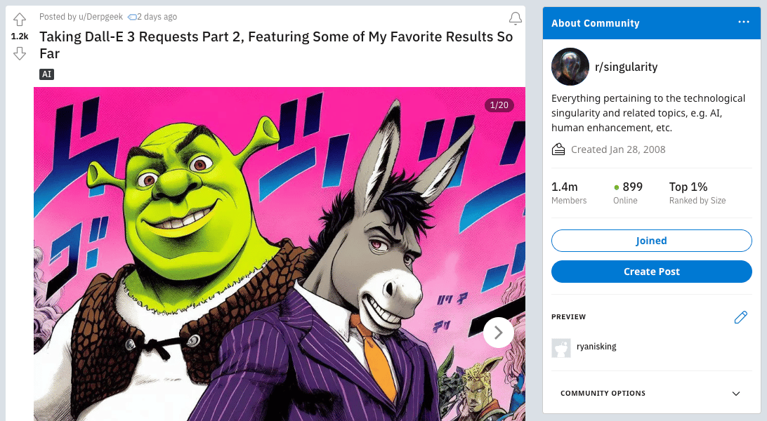 On Monday, the company published a blog post with the kind of title that flashes on the screen during the opening credits of a dystopian Sci-Fi movie alongside footage of people looting supermarkets: “ChatGPT can now see, hear, and speak”. Paying ChatGPT users will soon be able to talk to the AI and send it images, features that were outlined last spring when OpenAI announced GPT-4, but have yet to be released to the public. OpenAI has also launched a research version of DALL-E 3, a new iteration its image generator. And, based on what users with early access are sharing, it’s lightyears better than DALL-E 2. Look, it can even do Jojo's Bizarre Adventure Shrek now.