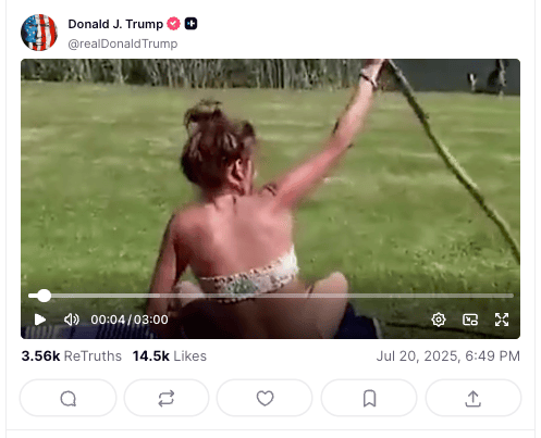 But the weirdest attempt at distracting his supporters that Trump has tried this week is posting literally just a viral video montage of like cool videos, including a woman catching a snake. Thanks Mr. President, great posts. I’ll stop asking questions about your well-documented relationship with the world’s most notorious pedophile now.