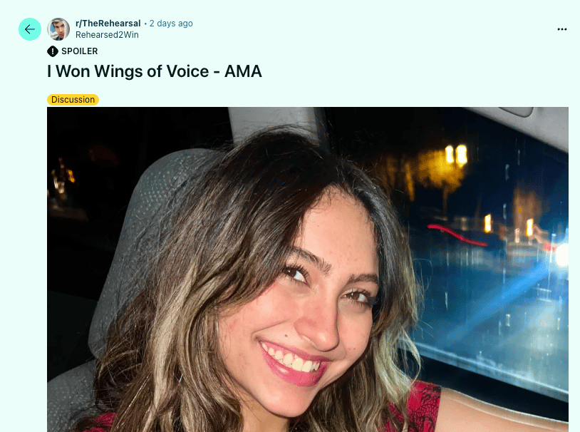 I won’t totally spoil The Rehearsal finale which aired this week, but, for those who have watched it, the winner of the in-show fake reality competition Wings of Voice did an AMA on Reddit this week. (That’s not a spoiler, you’re weird if you care who won. Though, congrats to her!)