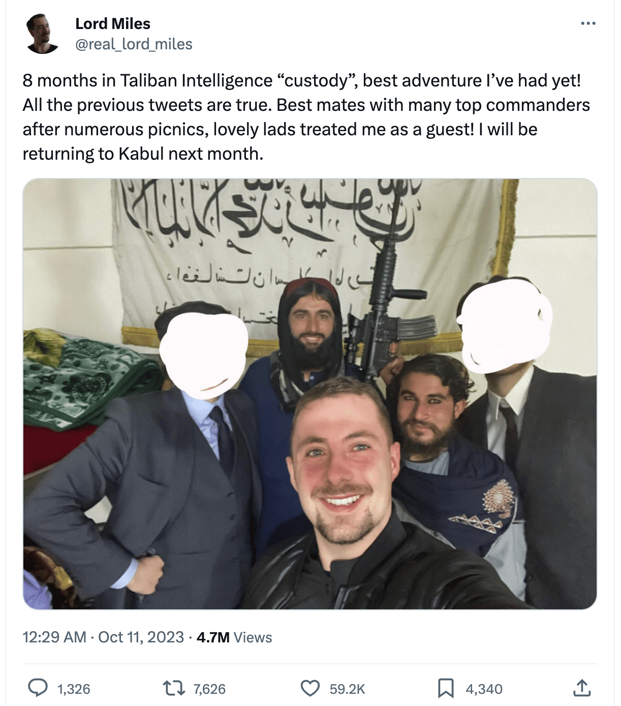 One of the most bizarre storylines of 2023 reached some sort of end this week. Miles “Lord Miles” Routledge, the right-wing edgelord “danger tourist” that once got scared walking around Brooklyn, is out of Taliban custody. Routledge has been under some form of house arrest in Afghanistan since January. Most of his followers assumed he was dead.