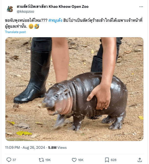 And it could be because of that fandom that Moo-Deng content is having a peculiar effect on my various feeds. Basically every single time I click on a Moo-Deng post, regardless of platform, my entire timeline suddenly because completely Thai. It’s fascinating. I’ve never seen anything like it. In fact, just pulling up the links for this section immediately sent this excellent Moo-Deng fan art into my feed. This little hippo has conquered the algorithm and I, for one, am think it’s a big improvement on anything that was on there before.