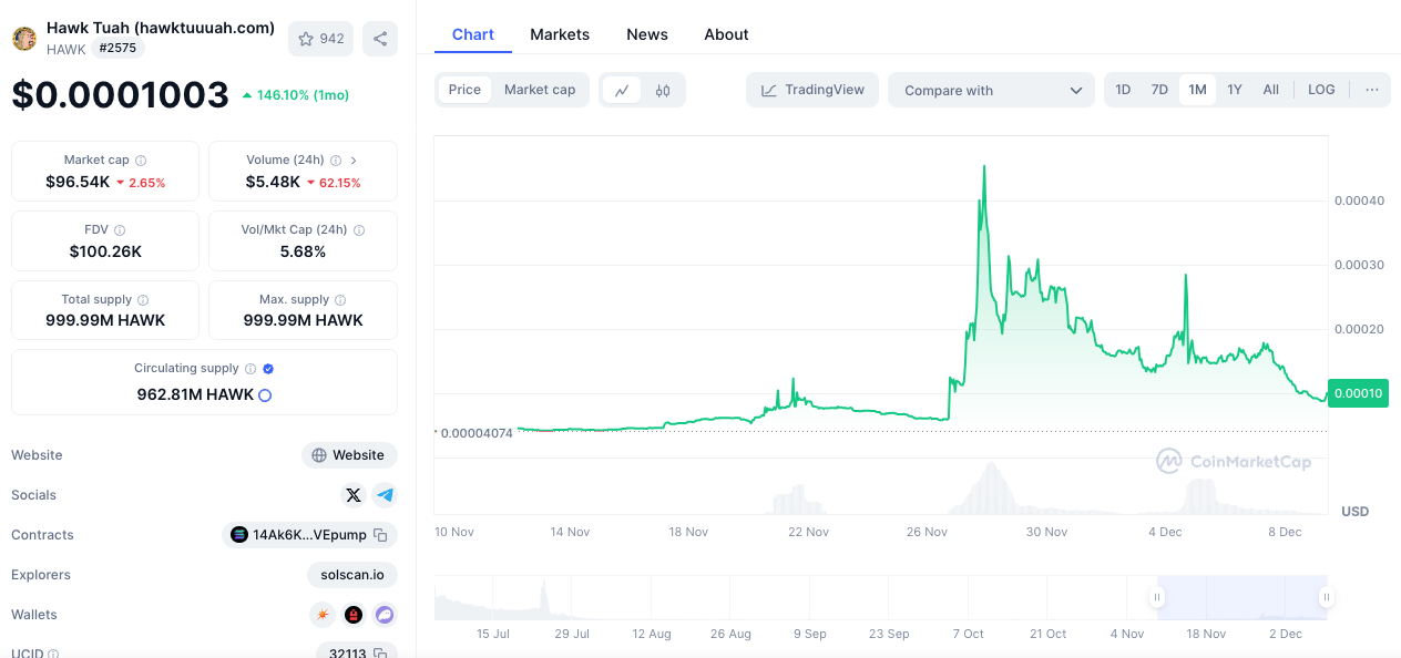 Haliey Welch, the Hawk Tuah girl, has found herself at the center of a royal crypto fuck up. She decided to launch a memecoin called $HAWK and it immediately shot up to over almost $500 million in valuation before dropping more than 90% in a few hours.