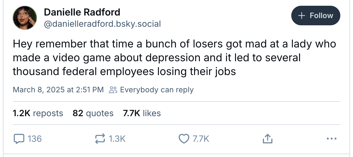 Sen. Bernie Sanders did what every single — and I mean all of them — Democrat should have done two months ago, and hit the road on a national campaign against the Trump administration and DOGE. He is, so far, the only Democrat doing it. Though, there’s some chatter that Rep. Alexandria Ocasio-Cortez will be joining him soon and organizing her own events. A lot of readers have been emailing me asking what exactly the Democrats can do and, well, this is as good of an idea as any, frankly. The internet is flooded with fascist garbage (see above), so they should go outside, connect with actual people, and, in the process, make a lot of content they can flood the zone bacj with.