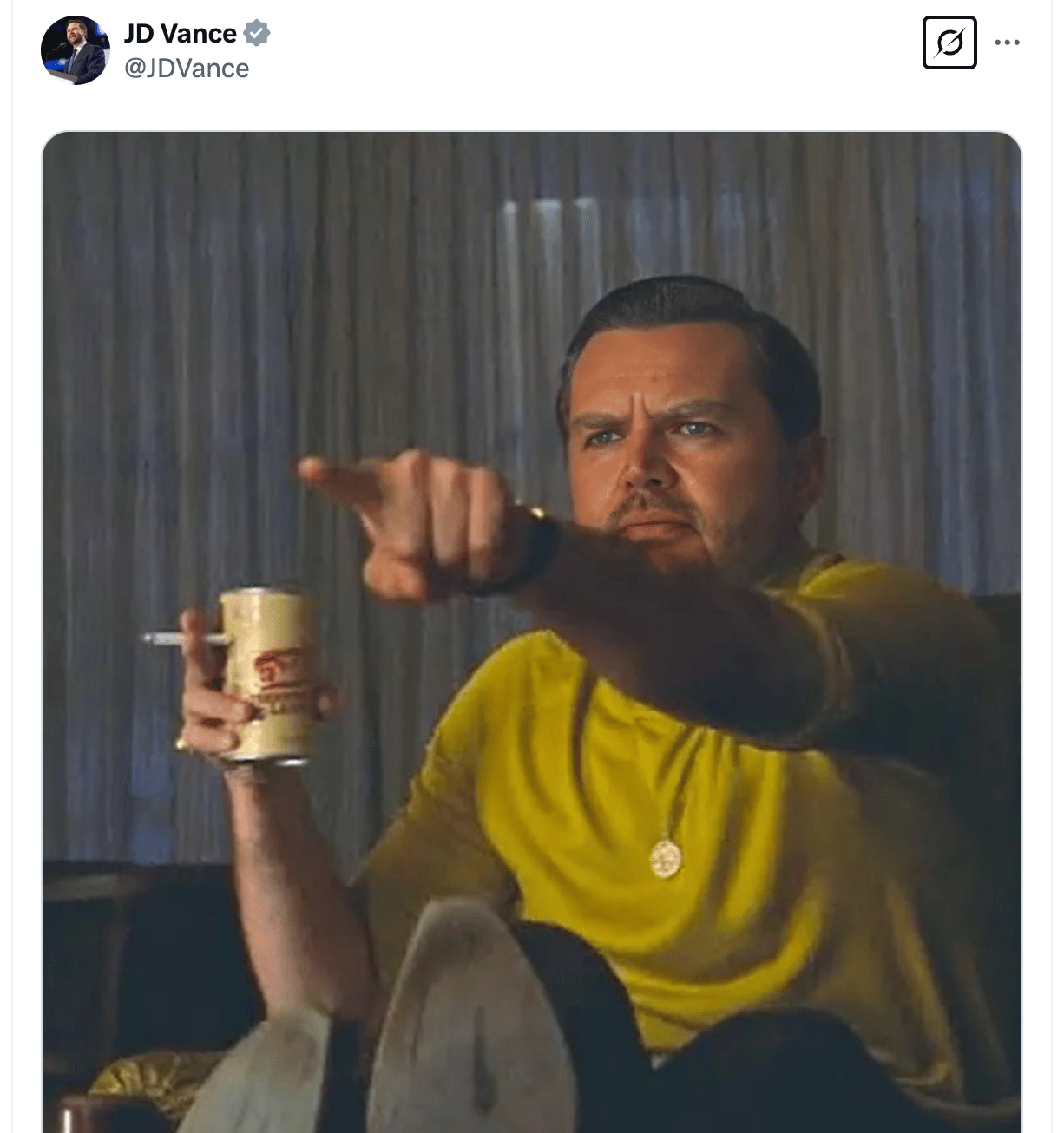 Vice President JD Vance tried to get in on the rare vances meme. He, of course, shared one where he doesn’t look like a grotesque monster or gross little boy, opting, instead, to share one where he’s been photoshopped on to Leonardo DiCaprio. Elon Musk liked it, I guess. Don’t worry, though, someone fixed it. Either way, meme’s probably over now.