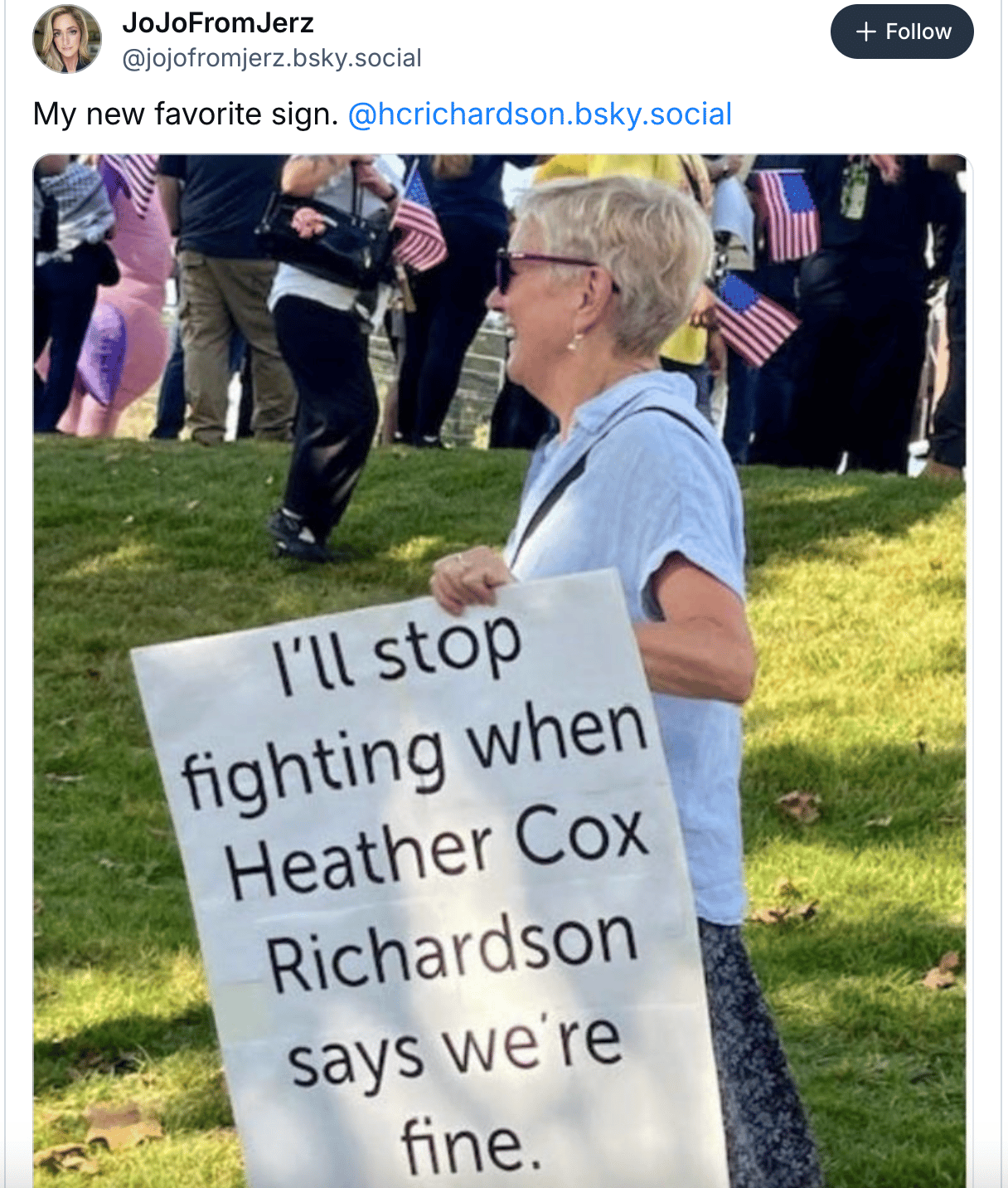 And, incidentally, I think working with candidates with Reddit histories like Platner’s or “pro-Hamas” Soundcloud rap like Mamdani’s — or whatever else gets unearthed about the messy digital lives of young millennial Democratic candidates — would help answer the single biggest question that loomed over the gargantuan No King’s Day rallies this week. Yes, the No Kings Days are good at getting people out into the streets, but there’s still no hint at what comes next. You cannot organize the biggest protests in US history and expect people to just go and vote for Chuck Schumer or Hakeem Jeffries again. And there is clearly a desire for something more after this weekend.